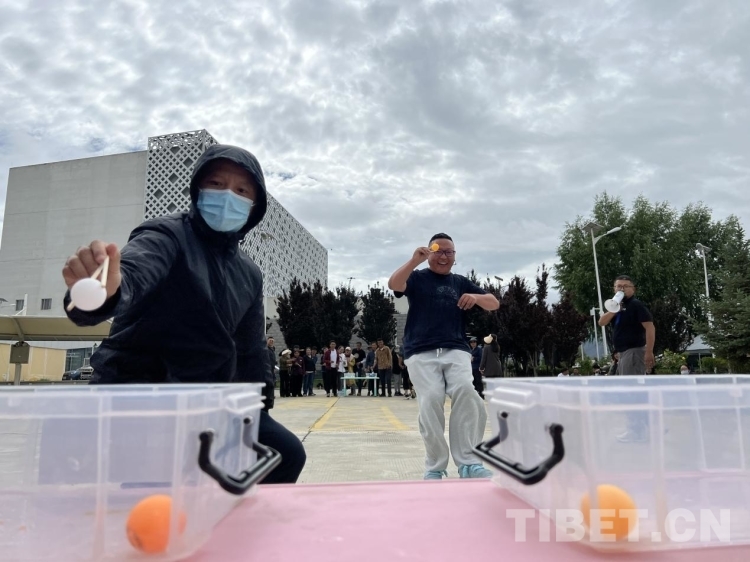圖為夾乒乓球接力比賽現(xiàn)場 攝影:德吉卓瑪