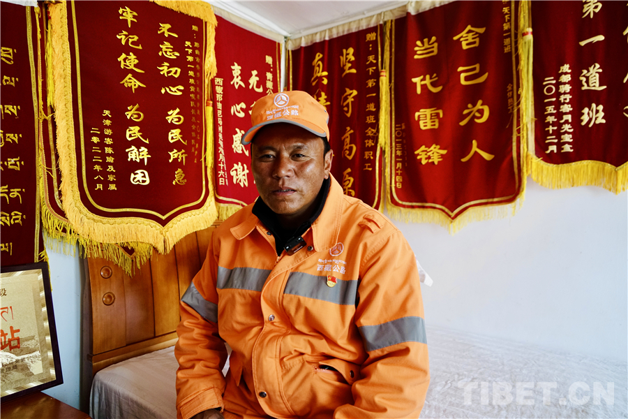 地嘎也是其中一員,現(xiàn)年43歲的他已經(jīng)在道班工作十年了,作為二代養(yǎng)路工人,他踏著父親旺杰的足跡,扎根在了109道班。