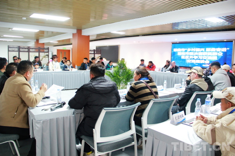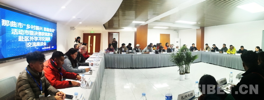 圖為10月22日,來自西藏自治區(qū)那曲市第三屆“鄉(xiāng)村振興 那曲奮進”活動市級決賽第一名獲獎群眾代表區(qū)外學(xué)習交流團抵達住地后,與中國藏學(xué)研究中心專家們進行交流座談 攝影:劉莉