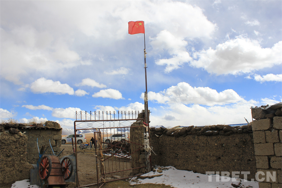 圖為多吉才覺(jué)家門口飄揚(yáng)的國(guó)旗 攝影:蔣馨悅