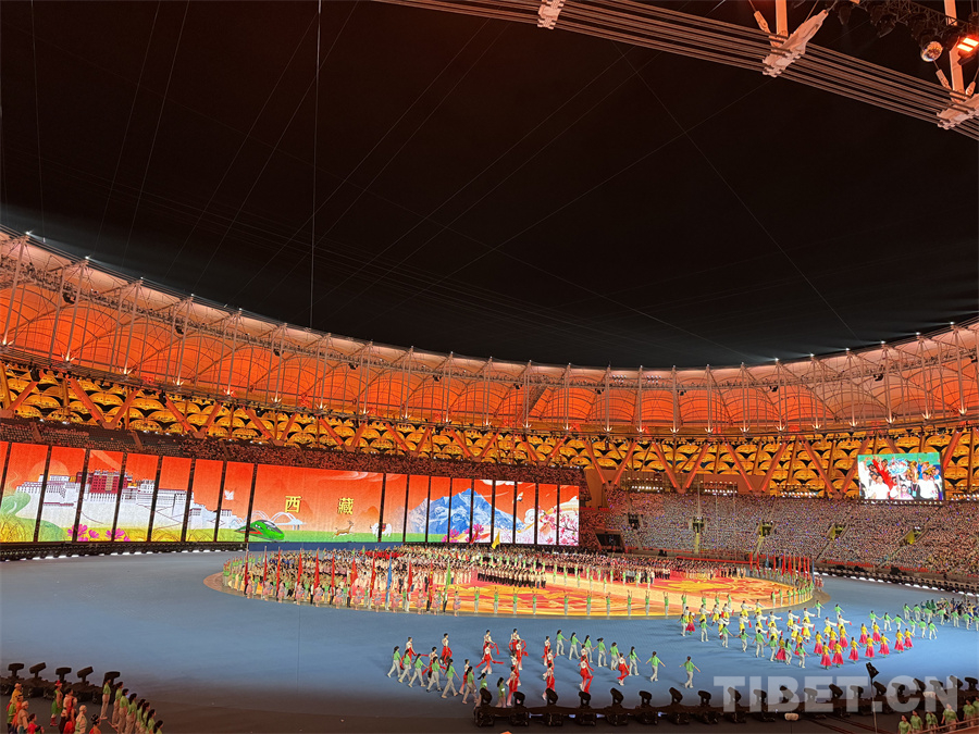 圖為西藏自治區(qū)代表團在開幕式上入場 攝影:蘇洋