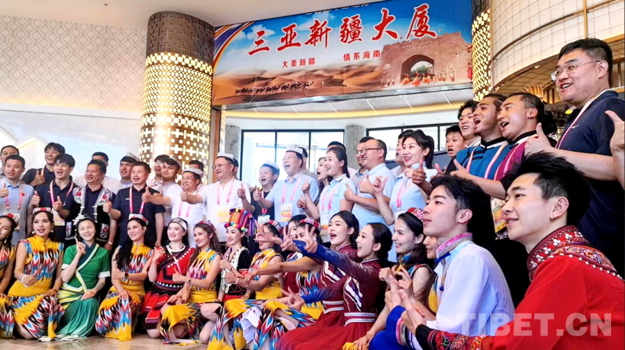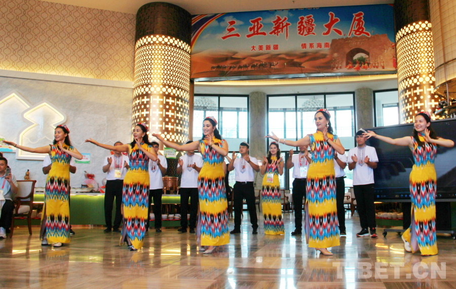 中國(guó)西藏網(wǎng)訊 精彩的傳統(tǒng)武術(shù)、悠揚(yáng)的歌聲、優(yōu)美的舞蹈……一陣陣掌聲、笑聲、歡呼聲從新疆代表團(tuán)駐地海南三亞新疆大廈傳出。11月27日,新疆代表團(tuán)邀請(qǐng)湖南、云南、黑龍江代表團(tuán)來(lái)到駐地舉行主題為“交各民族好朋友”的聯(lián)誼活動(dòng)。