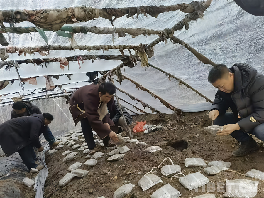 圖為昌都市農(nóng)業(yè)科學(xué)研究所工作人員為羊肚菌擺放外源營(yíng)養(yǎng)袋,為菌絲生長(zhǎng)補(bǔ)充營(yíng)養(yǎng)