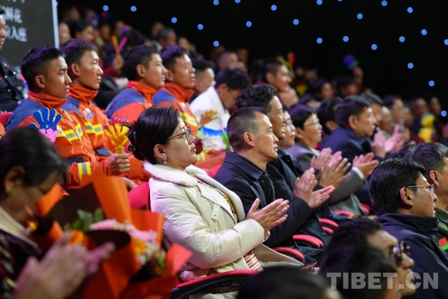 圖為觀眾為“感動拉薩”十大人物獲獎?wù)吖恼?攝影:德吉卓瑪