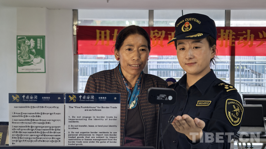圖為海關工作人員使用“智能海關”相關系統(tǒng)對出入境人員身份信息進行核對 圖片由拉薩海關提供