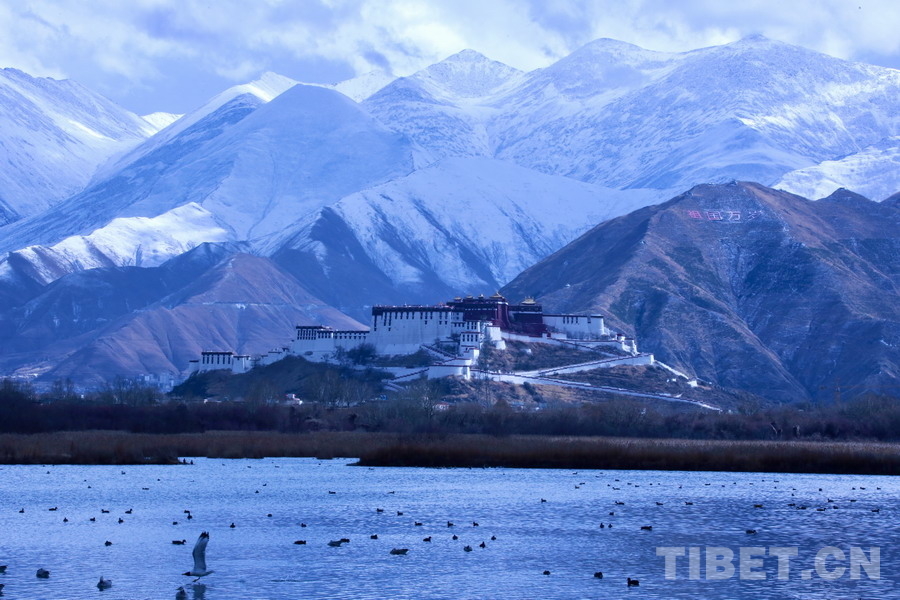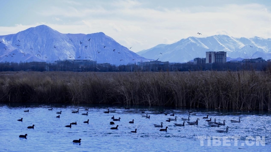 中國西藏網訊 拉魯濕地,是世界上海拔最高、面積最大的城市天然濕地,是拉薩市氧氣的主要補給源,被稱為“拉薩之肺”。連日來,拉薩迎來了2025年的降雪天氣。雪后漫步在拉魯濕地,映入眼簾的是成群的赤麻鴨在湖水中覓食或展翅飛翔,遠處布達拉宮在群山之間巍然矗立,濕地空氣里彌漫著泥土和植物的芳香,令人心曠神怡。(中國西藏網記者/德吉卓瑪)