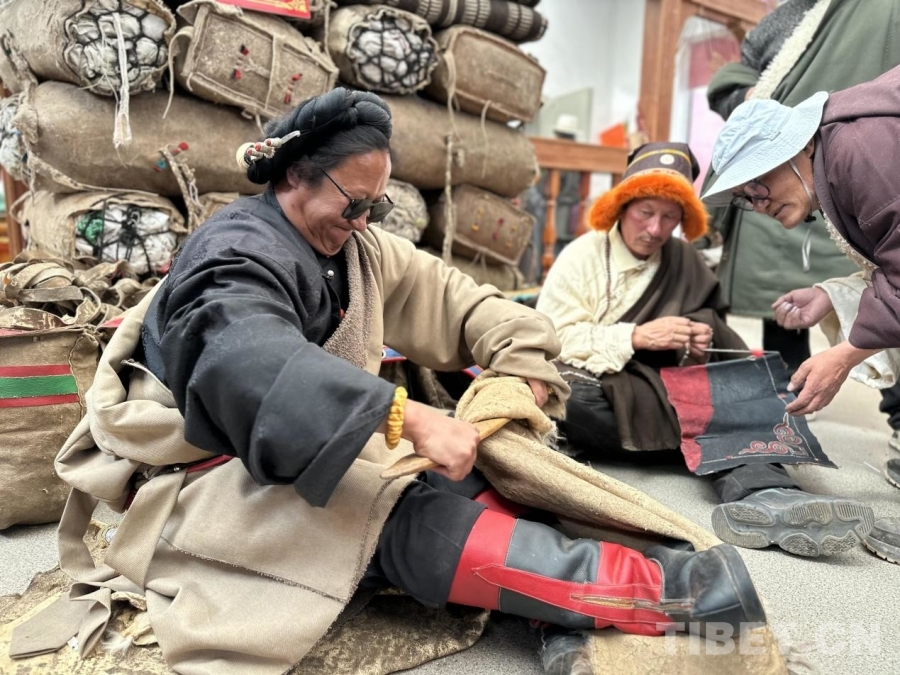 圖為藏比鄉(xiāng)美巴爾村皮具制作比賽現(xiàn)場