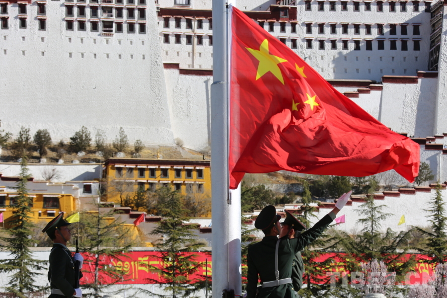 圖為2025年3月28日,國旗在布達拉宮廣場升起 攝影:旦曲