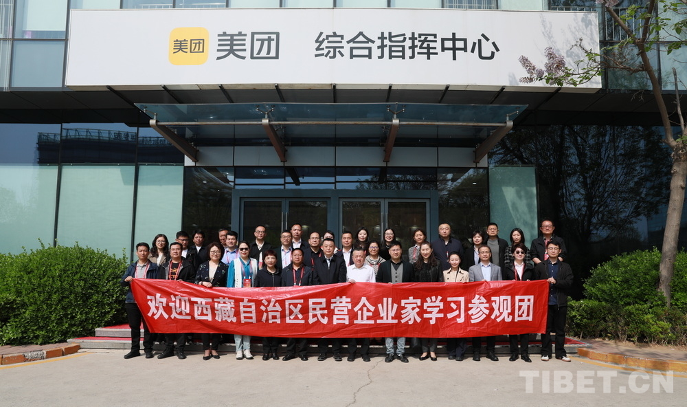 圖為西藏自治區(qū)民營(yíng)企業(yè)家學(xué)習(xí)參觀團(tuán)一行與美團(tuán)工作人員合影 攝影:劉莉