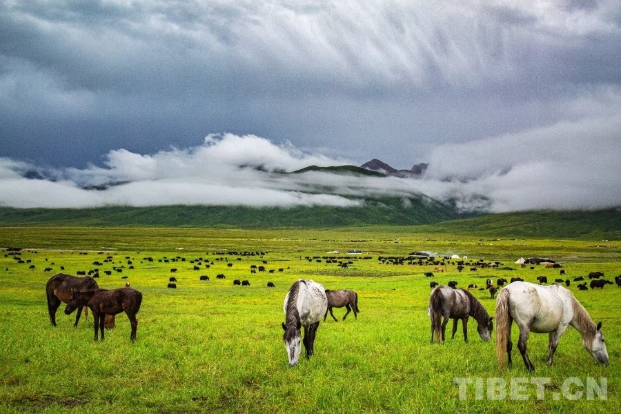 在這里,千百年來牧民們轉(zhuǎn)場放牧的古老智慧,讓草場得以休養(yǎng)生息;煨桑的裊裊青煙,將感恩與敬畏注入每一寸土地。在這里,阿萬倉牦牛以蹄印丈量時(shí)間,歐拉羊群如云影般掠過草原,河曲藏獒守護(hù)著草原的漫漫長夜,河曲馬踏響格薩爾王的千年傳說,它們都是舞動(dòng)在高原上的精靈。