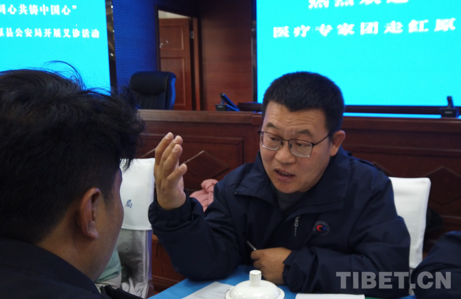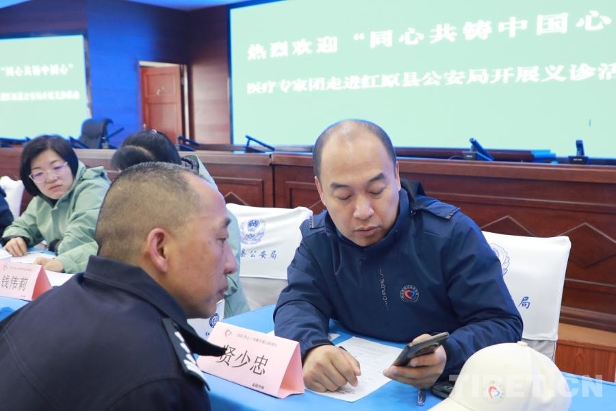 5月17日,在此次活動(dòng)阿壩州紅原縣現(xiàn)場之一,“紅九團(tuán)紅二連”來自北京通州區(qū)各醫(yī)院的12位醫(yī)生,在紅原縣公安局面向有就診需求的公安干警展開義診。