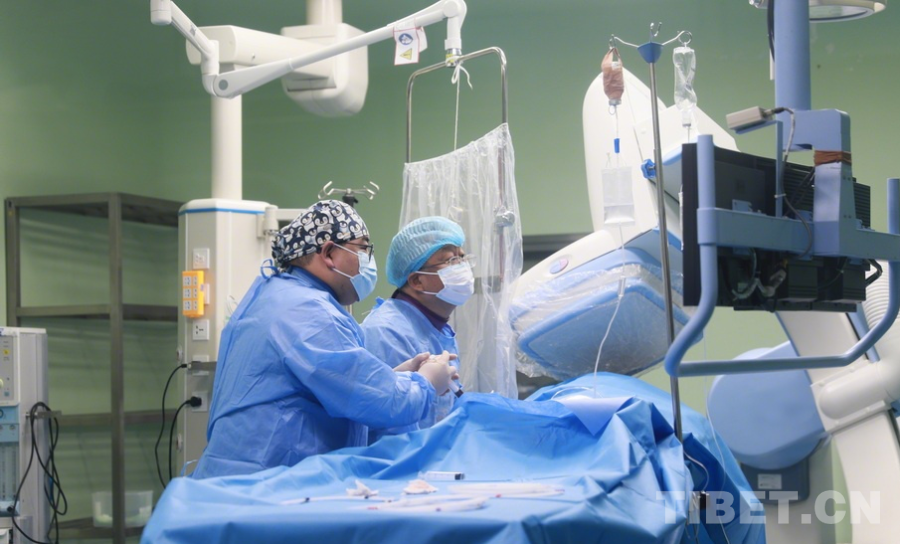 圖為陰赪茜(右)趕赴阿壩州人民醫(yī)院救治急性心梗患者,在阿壩州人民醫(yī)院心內(nèi)科主治醫(yī)師孫壘協(xié)助下為患者手術(shù) 攝影:劉莉