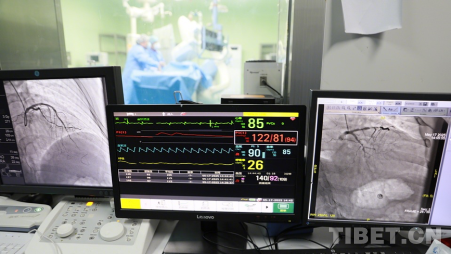 圖為陰赪茜趕赴阿壩州人民醫(yī)院手術(shù)救治急性心?;颊?,屏幕上顯示出患者心臟血管多處問題嚴重 攝影:劉莉