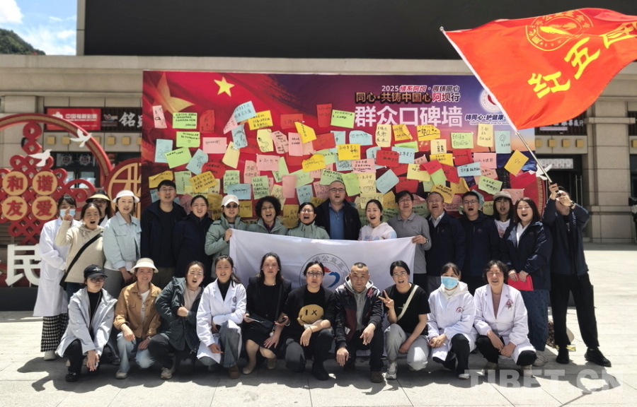 圖為“同心·共鑄中國心”2025阿壩行大型健康公益綜合服務活動四川省阿壩州首府馬爾康市義診點的醫(yī)療專家們義診結(jié)束后在群眾口碑墻前留影 攝影:吉文革