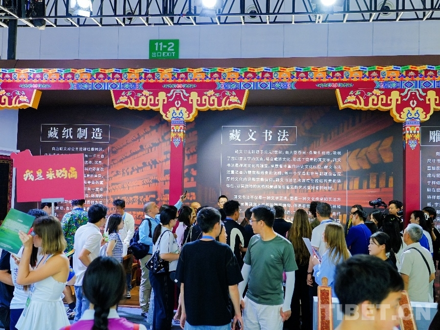 圖為博覽會上藏族雕版印刷體驗區(qū)