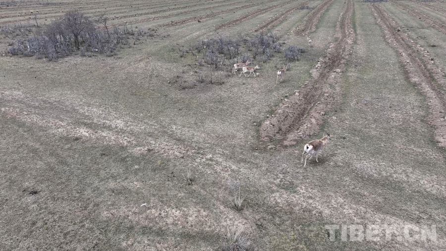 圖為無人機(jī)捕捉到的珍貴的野生普式原羚影像,它們的夏季被毛呈棕黃色,可以較好地融入周邊環(huán)境,同時(shí)性格警覺,對(duì)風(fēng)吹草動(dòng)都很敏感 青海省文旅廳供圖