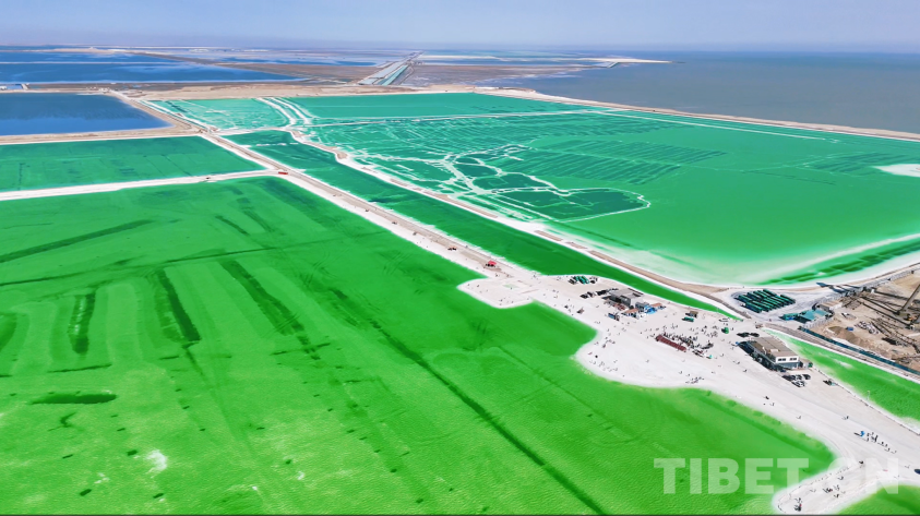 如今的察爾汗鹽湖,遠處的湖面上矗立著現(xiàn)代化大型采鹽設(shè)備作業(yè),鹽砣似雪山堆疊;湖畔,湖水翠綠,鹽花雪白,美麗的風光吸引無數(shù)游人打卡拍照,形成一幅開發(fā)與保護并重、工業(yè)與生態(tài)并存的和諧畫卷。