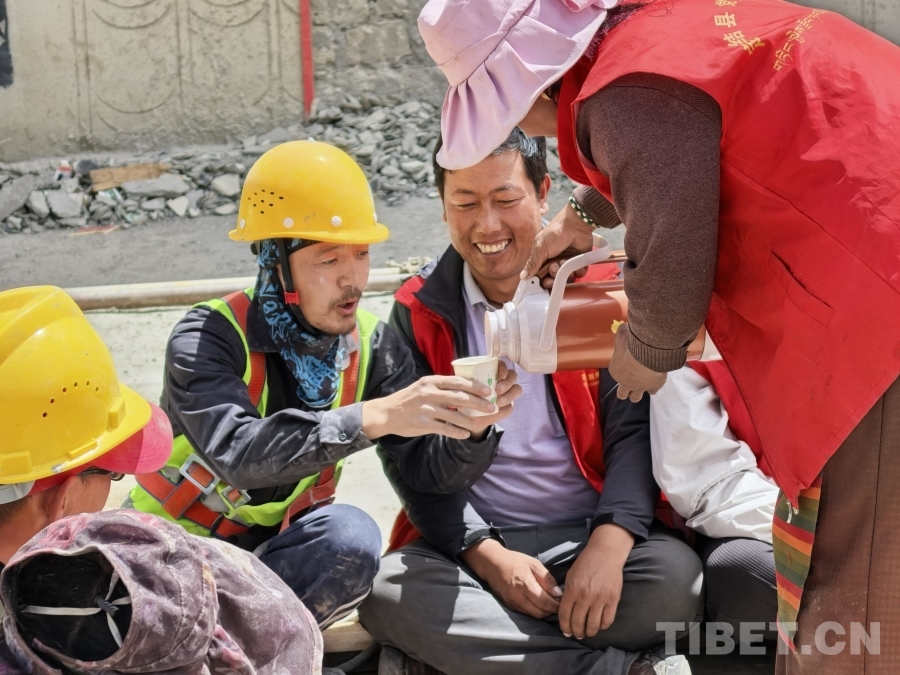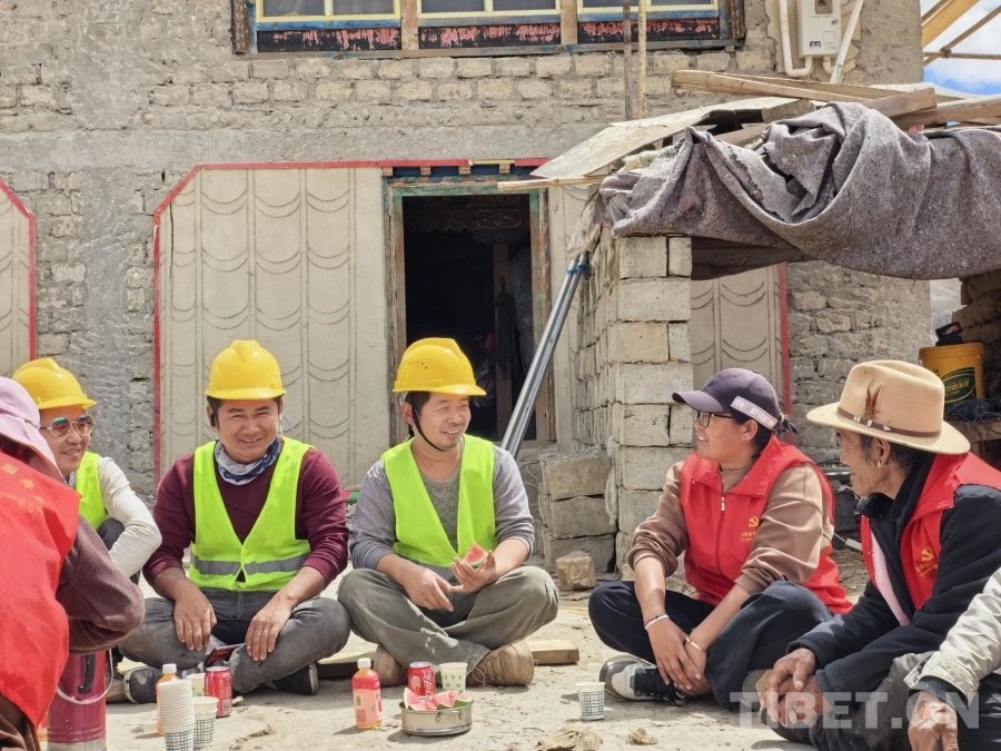 在白瑪村,黨員們自發(fā)組成志愿服務(wù)隊(duì),用實(shí)際行動(dòng)詮釋“中華民族一家親”。他們將精心熬制的酥油茶和洗凈切好的西瓜,送到了工地。工人們與村民們席地而坐,一邊品著酥油茶、吃著清甜西瓜,一邊親切地拉著家常。村支書(shū)次多動(dòng)情地說(shuō):“施工隊(duì)千里迢迢來(lái)幫我們重建家園,送點(diǎn)茶水、西瓜表達(dá)心意,是應(yīng)該的!”