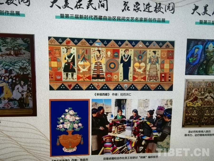 6月20日,“大美在民間——名家進(jìn)校園暨第三屆新時(shí)代西藏自治區(qū)民間文藝名家新創(chuàng)作品展”開(kāi)展。圖為展覽陳列 攝影:趙釗