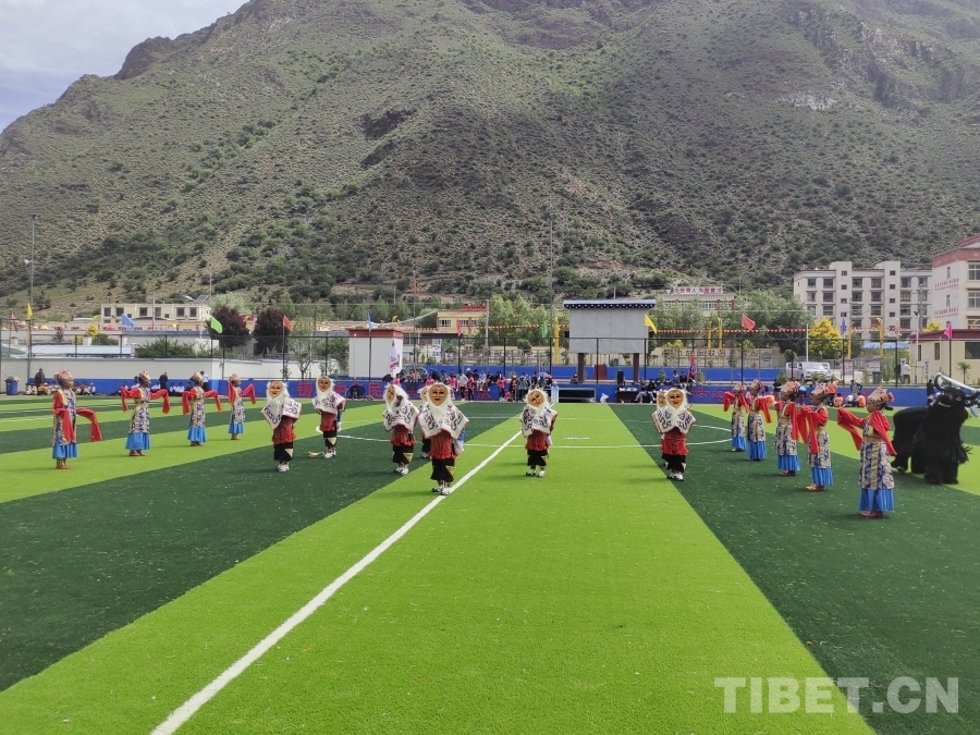 圖為西藏洛隆縣達(dá)龍鄉(xiāng)第二屆中遠(yuǎn)海運鄉(xiāng)村足球聯(lián)賽“吉祥杯”開幕式上的舞蹈表演