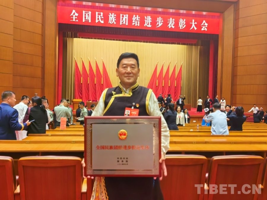 圖為邊巴在全國民族團結進步表彰大會現(xiàn)場 受訪者供圖