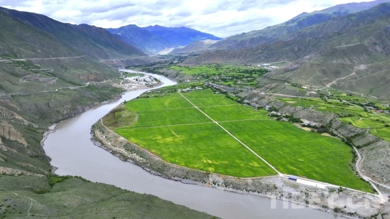 圖為位于西藏自治區(qū)昌都市洛隆縣江畔的青稞麥田