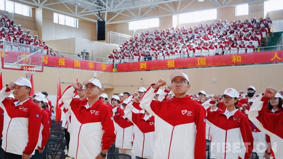 中國西藏網(wǎng)訊 7月29日,激昂的旋律回蕩在拉薩,一場莊嚴的出征儀式在此舉行。來自北京、河北、四川、湖南、上海、西藏等全國22個?。ㄗ灾螀^(qū)、直轄市)的1200余名大學(xué)生志愿服務(wù)西部計劃服務(wù)西藏專項志愿者整裝集結(jié),滿懷壯志,即將奔赴西藏自治區(qū)7市(地)基層一線,開啟為期1至3年的志愿服務(wù)新征程。其中,研究生支教團成員達124人。