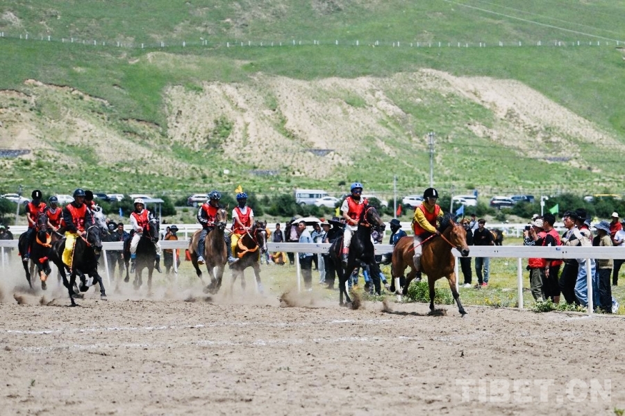 圖為騎手們在賽場上策馬揚(yáng)鞭