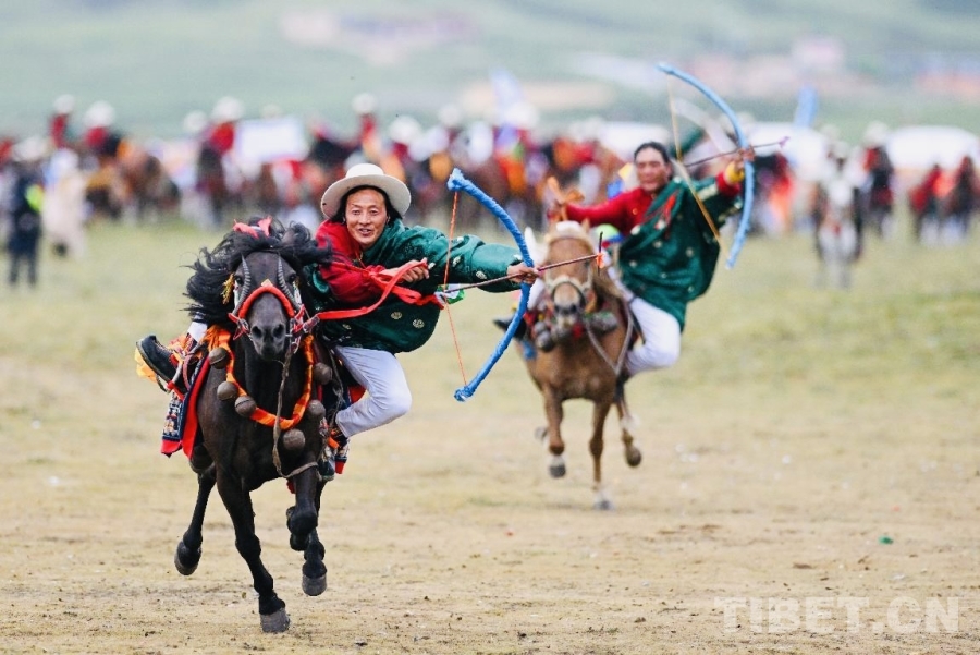 接下來,曲登鄉(xiāng)、禾尼鄉(xiāng)、村戈鄉(xiāng)騎手接連登場,兩輪競演,騎手們駕馭駿馬如履平地。俯身拾哈達(dá)的瞬間,身體幾乎與地面平行?!斑燃m”技藝展示時,騎手在馬背上輾轉(zhuǎn)騰挪,打靶環(huán)節(jié)箭矢破空,正中靶心?!斑@些騎手和馬就像是一體的,太厲害了!”現(xiàn)場游客張女士忍不住驚呼?,F(xiàn)場的觀眾也被騎手們精湛的騎術(shù)和人馬合一的表演所折服,掌聲如雷貫耳。