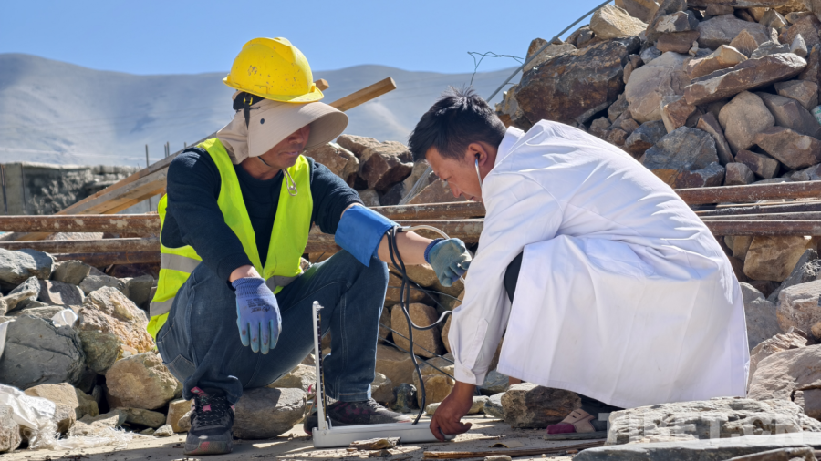 健康守護(hù)網(wǎng),筑牢重建防線。月初頂層澆筑時(shí),施工隊(duì)員老張不慎踩中鐵釘。駐村工作隊(duì)立刻協(xié)同村醫(yī)貢嘎旦增現(xiàn)場(chǎng)處置,全程跟蹤治療確保傷口未感染。貢嘎旦增的足跡遍布工地,開(kāi)展健康服務(wù)5輪,測(cè)量血壓47人次,發(fā)放常用藥品30余份,覆蓋200余人。鄉(xiāng)衛(wèi)生院院長(zhǎng)為19名群眾定制慢性病方案,藏醫(yī)拉姆的“呼吸調(diào)節(jié)法”更有效舒緩了70余人的心理焦慮。