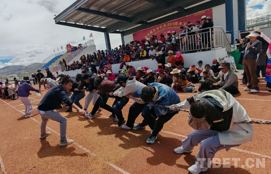 文藝演出落幕,文體活動接棒升溫。100米、200米賽道上,選手們?nèi)珉x弦之箭,奔跑中揚起的塵土里;拔河繩兩端,隊員們腳蹬大地、身向后仰,加油的號子聲震得地上的石子都在跳;抱沙袋、押加項目中,選手們咬緊牙關(guān)、全力拼搏,圍觀群眾的吶喊助威聲浪一波高過一波;穿藏服拌糌粑環(huán)節(jié),大家整理衣襟、系緊腰帶,青稞粉與礦泉水在手中交融,香氣里飄著“共話家?!钡臏厍椤宽椈顒佣际且淮巍靶呐c心的對話”,讓團結(jié)的種子在互動中生根發(fā)芽。