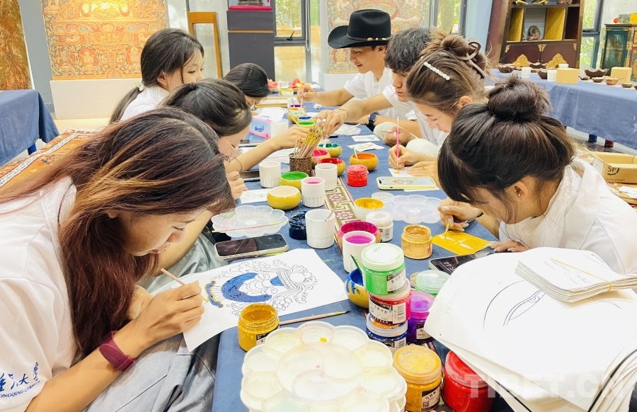 圖為重慶大學(xué)“格?;ā编l(xiāng)村振興調(diào)研實(shí)踐活動之藏式繪畫體驗(yàn) 重慶大學(xué)供圖