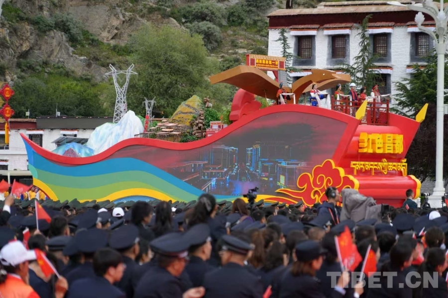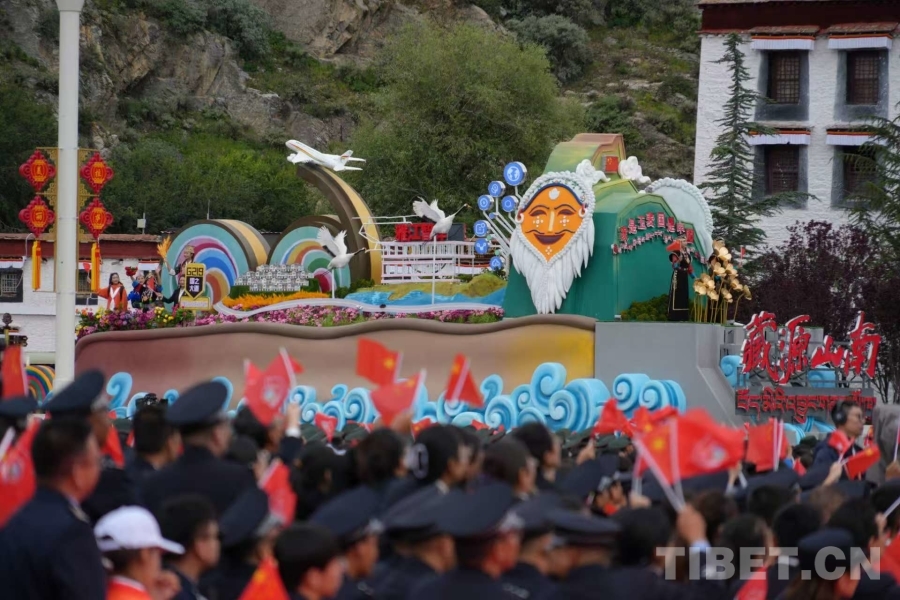 中國西藏網(wǎng)訊 西藏自治區(qū)成立60周年慶祝大會(huì)于8月21日上午10時(shí)在拉薩隆重舉行。西藏自治區(qū)七地市靚麗的主題彩車與歡歌勁舞的方隊(duì)以濃郁的地方特色令現(xiàn)場觀眾歡呼不斷。(中國西藏網(wǎng) 記者/王淑 馮重霖 劉莉 趙釗 姚浩然 楊眉笑 德吉卓瑪 趙振宇 賈華加 邊子捷 次旦拉姆 旦曲)