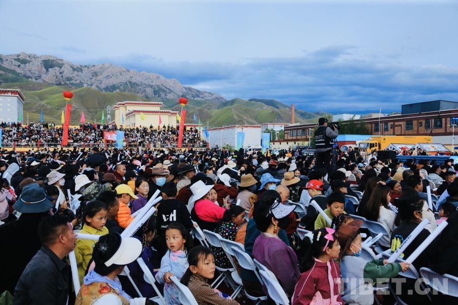 圖為啟幕儀式現(xiàn)場座無虛席,為囊謙縣群眾帶來一場跨越地域的文化盛宴與視聽體驗。攝影:龍真多吉
