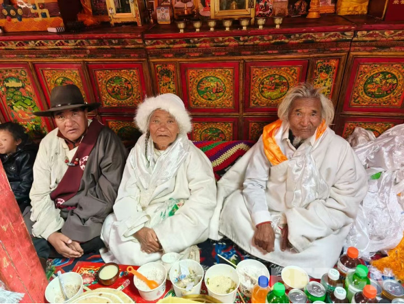 我們家孩子多,年齡都只差一兩歲。媽媽常常懷里抱著才幾個(gè)月大的弟弟,背上還背著剛滿一歲的另一個(gè),就這樣去公社勞動(dòng)。那時(shí)我七歲,老二六歲,日子過(guò)得特別苦。我們只有一頂又小又舊的黑帳篷,白天我們就待在帳篷里等。父母放羊回來(lái),有時(shí)我們?cè)缫言诘厣纤恕3缘臇|西也很簡(jiǎn)單,只有糌粑,喝的也只是用羊奶做成的奶渣水?,F(xiàn)在孩子們稍微冷一點(diǎn)就會(huì)抱怨衣服不夠暖,可那時(shí)候,我們連像樣的衣服都穿不上。雖然家里人多,但真正能勞動(dòng)的少,孩子又都還小。公社按工分分配,我們家不僅掙不夠,還常常欠下不少。一想到父母當(dāng)年受的那些苦,我心里就特別不是滋味。如今只要吃到好吃的,我第一個(gè)想到的就是父母;見到好穿的,第一個(gè)念頭也是他們,總想讓他們也嘗一嘗、穿一穿。