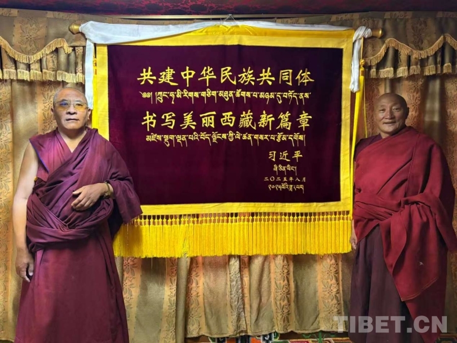 中央代表團(tuán)向孝登寺贈(zèng)送了習(xí)近平總書記題詞的“共建中華民族共同體 書寫美麗西藏新篇章”賀幛。土登對(duì)此深有感觸:“‘共建中華民族共同體’意味著56個(gè)民族共同致力于中華民族的偉大夢(mèng)想;‘書寫美麗西藏新篇章’是指西藏從1965至今發(fā)生巨變,我們正在此基礎(chǔ)上創(chuàng)造更美好的未來(lái)。”