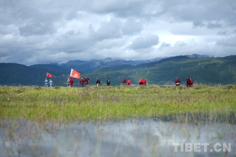 圖為“重走長(zhǎng)征路”活動(dòng)中,迪慶州藏傳佛教界人士沿著先輩足跡行進(jìn)噶丹·松贊林寺供圖