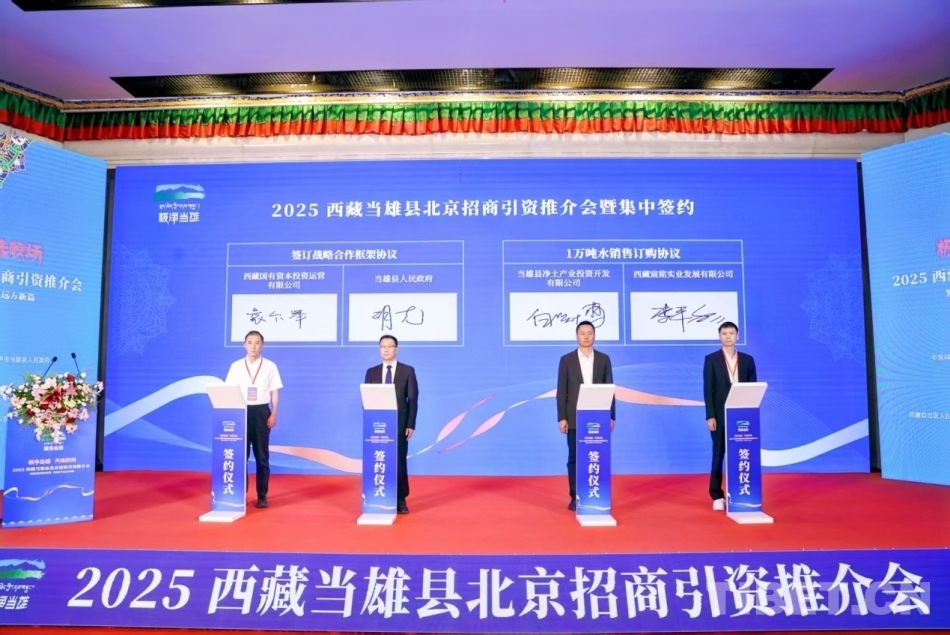 現(xiàn)場成功簽約4個重點項目,涵蓋新能源、天然飲用水、戰(zhàn)略合作等領域,簽約總金額超4億元。當雄縣首次赴京招商引資戰(zhàn)略取得突破性成果。