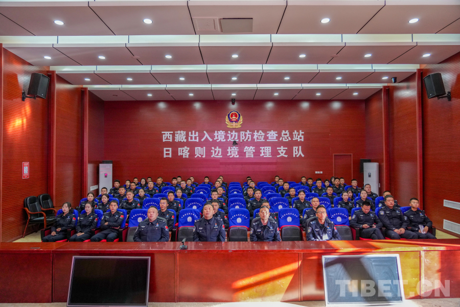 圖為日喀則邊境管理支隊(duì)機(jī)關(guān)組織民警收聽收看紀(jì)念中國人民抗日戰(zhàn)爭暨世界反法西斯戰(zhàn)爭勝利80周年大會(huì) 攝影:葉軼