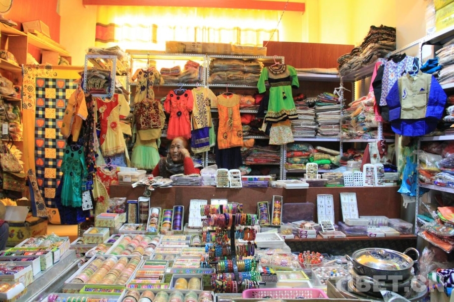走進市場,濃郁的尼泊爾風(fēng)格迎面而來。精致生動的手工藝品、各色各樣的尼泊爾服飾、夸張華美的首飾、風(fēng)味多樣的香制品,構(gòu)成了極具特色的商業(yè)品類。尤其是手工藝品,一個一價,各個不同,甚至有些瑕疵也不耽誤有顧客欣然購入。在這里,咖喱、巧克力、鍋具、糧食等生活用品也能買到,品類不可謂不豐富。尼泊爾店主們各有生意經(jīng),他們用不同的語言與不同的客戶交流,推銷著自己的特色商品,在討價還價中逐漸適應(yīng)在異國經(jīng)商,適應(yīng)普蘭,適應(yīng)現(xiàn)在安穩(wěn)滿足的生活。