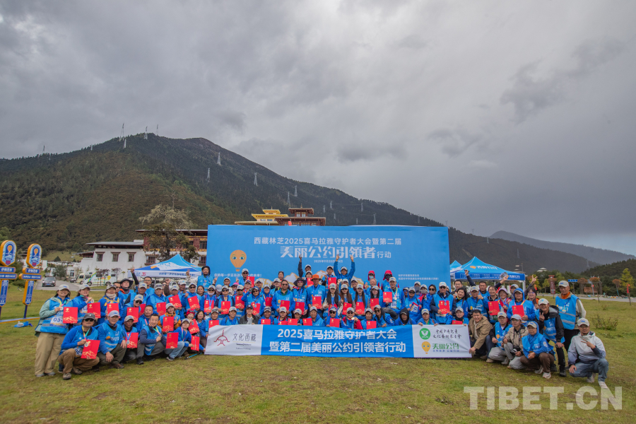 圖為參加“2025喜馬拉雅守護(hù)者大會暨第二屆美麗公約引領(lǐng)者行動”志愿者合影留念