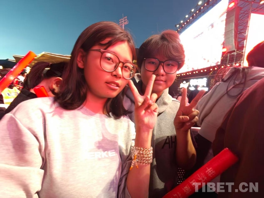 在她身旁的是兩位來自西藏大學(xué)的學(xué)生——米瑪倉覺和她的朋友旦增措姆。她們?cè)诮邮懿稍L時(shí)表示,如今拉薩這類文化活動(dòng)越來越多,只要有空她們就會(huì)參加。“這樣的場(chǎng)合不僅能見到喜歡的歌手,也讓我們?cè)谛@生活之外學(xué)到新東西,我們非常喜歡?!泵赚攤}覺說道。