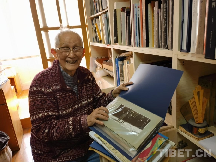 3月21日,我懷揣相冊,專程登門拜訪丁遵新先生。來到丁先生家,一壁字畫,滿屋書香。92歲高齡的先生,依舊精神矍鑠,思維敏捷。我說明來意,攤開相冊,請先生辨認這組西藏照片是否出自他手?先生凝視著照片,一時語塞,說:“當(dāng)年湖北團只有我一名攝影記者,這些相片肯定是我拍的。”激動之余,老先生進到書房翻騰了好久,終于又找出兩張當(dāng)年的西藏照片,其中一張為罕見彩色印刷品,加上我母親保存的,總計12幅。