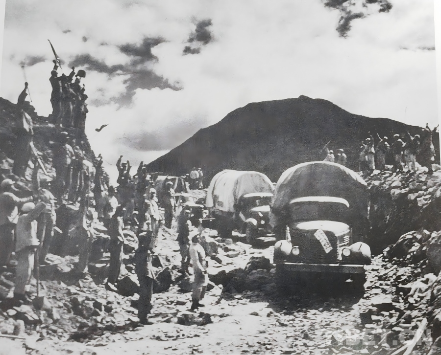 1954年11月27日,寒風(fēng)凜冽的巴河橋畔,終于迎來了歷史性交匯。東線由軍區(qū)后方部隊(duì)陳明義司令員、后政白健代主任率一五七團(tuán)、工兵八團(tuán)等,與西線筑路指揮部政委楊軍率領(lǐng)的一五五團(tuán)、筑路民工等在此會師。沒有盛大的儀式,沒有激昂的致辭,只有分別4年多的前后方戰(zhàn)友、并肩筑路的民工、翹首以盼的各族群眾,隔著滿是塵土的軍裝相擁——凍裂的手掌緊緊相扣,沾滿灰沙的臉上綻放笑容,激動的熱淚順著皺紋滑落。這一刻,他們腳下的公路終于連成一線!從雅安到拉薩,全長2255公里,3000多位志士英勇捐軀,每一寸路基都浸染著血汗、每一塊碎石都凝結(jié)著堅(jiān)守!