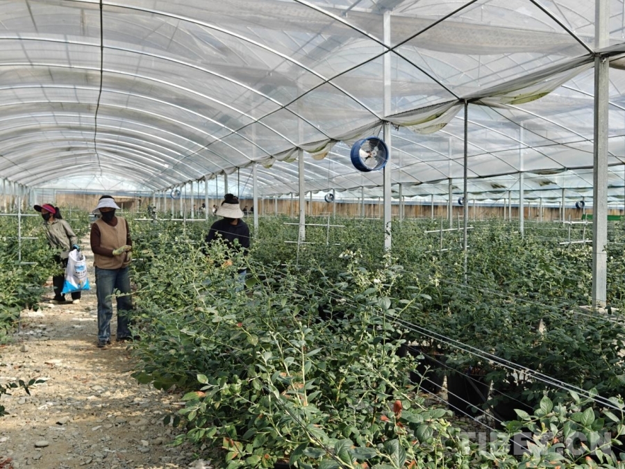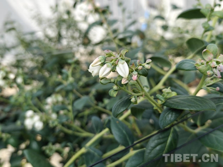 圖為戈壁田園現(xiàn)代農(nóng)業(yè)項(xiàng)目內(nèi)待結(jié)果的藍(lán)莓花
