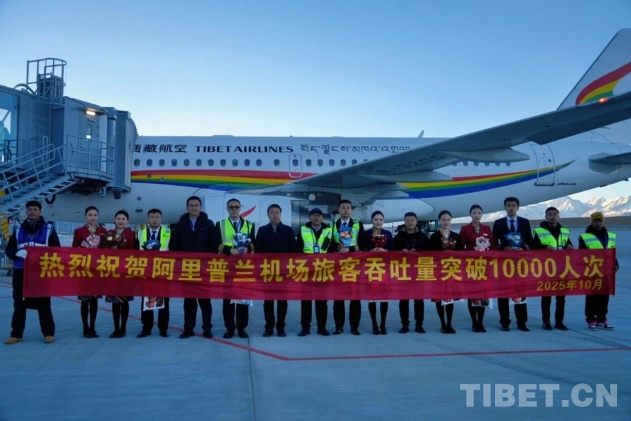 圖為阿里普蘭機(jī)場(chǎng)2025年年旅客吞吐量破萬合影