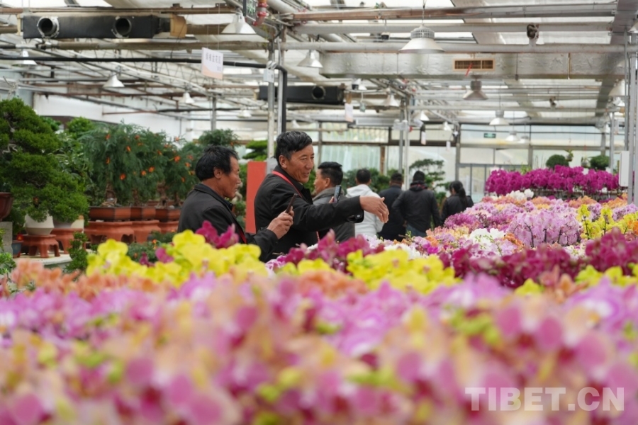 圖為西藏基層干部學(xué)習(xí)參觀團成員參觀花卉市場 攝影:王茜
