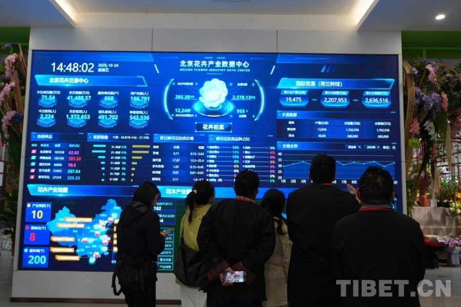 圖為西藏基層干部學(xué)習(xí)參觀團參觀花卉產(chǎn)業(yè)數(shù)據(jù)中心 攝影:陳玲玲