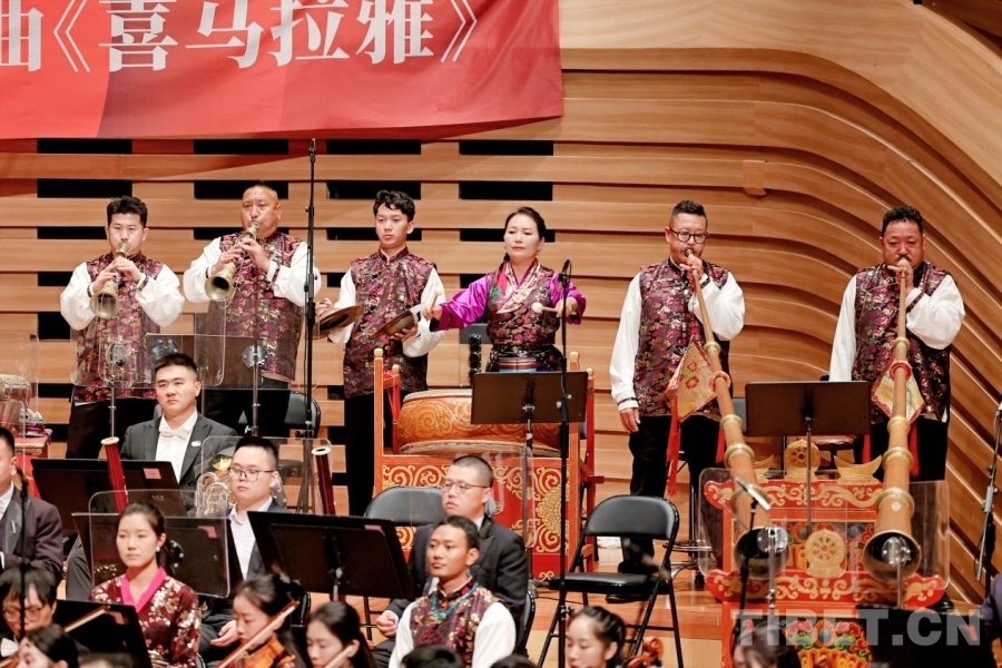 《喜馬拉雅》以世界屋脊的壯麗山河為背景,融合西藏傳統(tǒng)音樂元素與現(xiàn)代管弦樂創(chuàng)作手法,通過《緣起》《新生》《江河》《歡歌》《奔騰》《輝煌》等六個(gè)樂章,生動(dòng)展現(xiàn)了西藏自然景觀的雄奇、人文歷史的厚重以及新時(shí)代西藏各族人民的幸福生活。演奏中,扎念琴、鷹笛、嗶旺、西藏大號(hào)等西藏特色樂器與交響組曲交相輝映,既保留了傳統(tǒng)音樂的純凈悠遠(yuǎn),又賦予作品強(qiáng)烈的時(shí)代氣息,勾勒出一幅雪域高原生生不息的壯美畫卷。