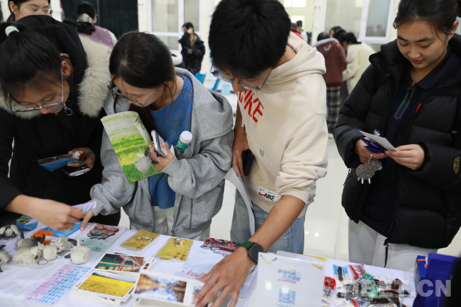 圖為活動現場同學們領取西藏相關明信片、手工文創(chuàng)及雜志。攝影:畢然